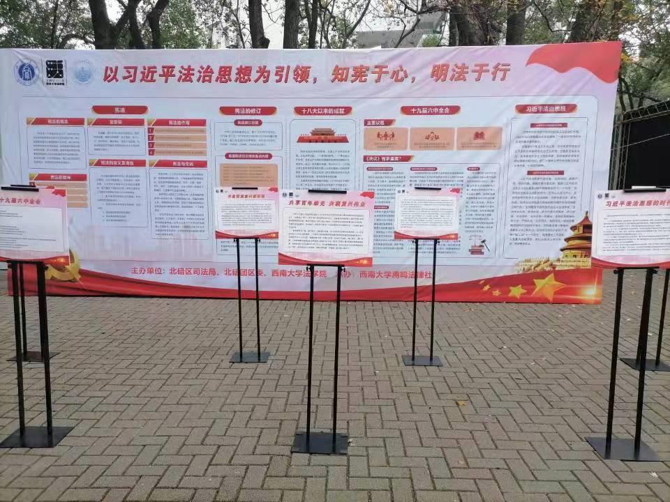 12月4日,开展面向全体西大学子的与“法”有缘普法游园活动。通过在校园内摆放展板、摆点设置宪法知识小游戏等方式为同学们提供生动有趣的法律知识普及。