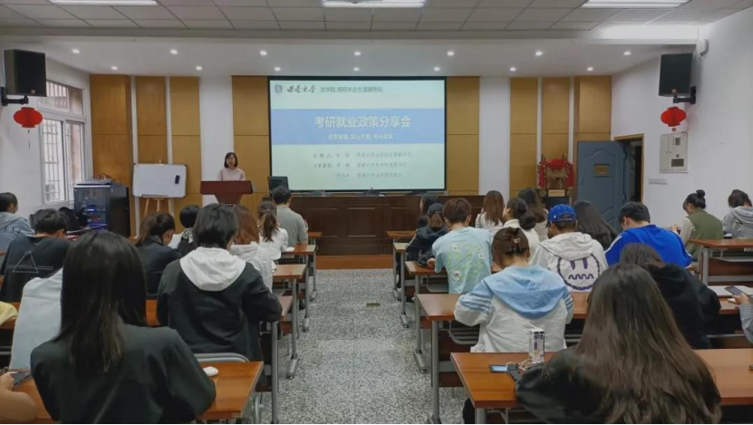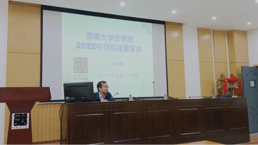 首先,赵兴洪副院长从“重新发现西南大学”“招生专业及名师”“招生政策解读”三个板块全面系统地介绍了学院的考研招生情况,并就近年来考研招生中发现的实际问题为同学们提出了建议。赵兴洪老师强调,考研是综合能力的比拼,对法学基础知识、逻辑分析能力、表达能力等诸多方面皆有考察。除开纸上答卷之外,面试中展现出的个人素质与能力也是获得老师青睐的关键。此外,赵老师还一一回答了会前同学们提出的参考书目、历年报录比、少民骨干招生政策等问题,耐心细致地解答了大家对研究生招生的困惑。
