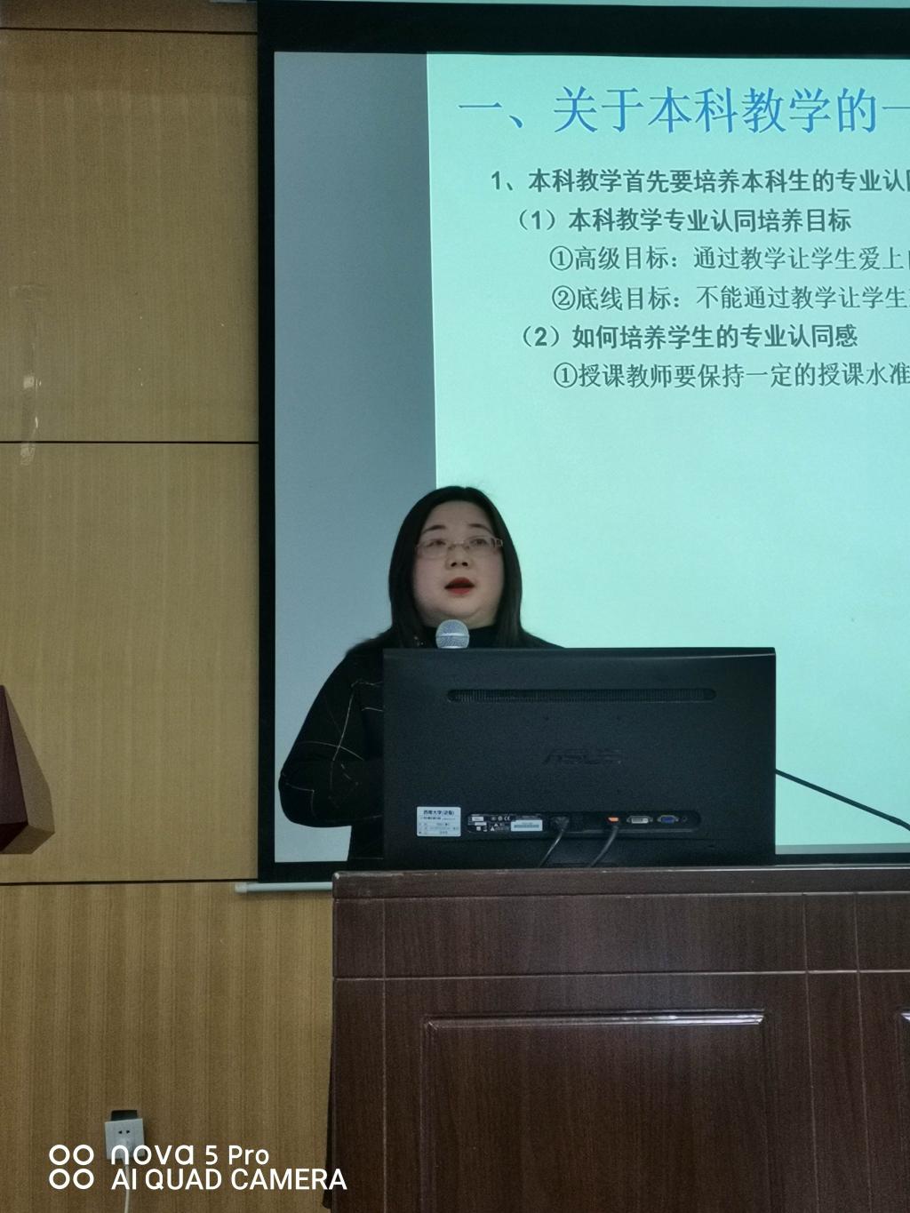 在随后的“教师说教学”环节中,宫艳丽老师、李丹老师、杨攀老师先后从课堂教学的一般原理和方法,示范课,以及一流课程建设的理论与实践角度,分别阐述了各自对本科教育教学的理解和看法。