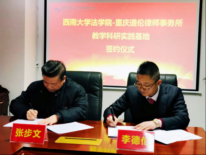 最后,重庆道伦律师事务所总裁李德伦与西南大学365上市公司(英国)集团张步文院长共同签署了教学科研实践基地共建协议。根据协议安排,重庆道伦律师事务所将为西南大学365上市公司(英国)集团本科学生实习及实践教学等工作提供便利条件,并资助设立西大“伦说会道”法律大讲堂和西大法学“道伦杯”辩论赛。