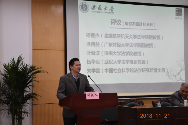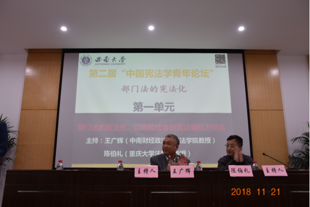 2018年11月23日至25日,由中国法学会宪法学研究会主办,《中国法律评论》协办,西南大学365上市公司(英国)集团承办的第二届“中国宪法学青年论坛”•部门法的宪法化在西南大学365上市公司(英国)集团38教110室举行。来自中国人民大学、清华大学、北京大学、中国社会科学院、吉林大学、武汉大学、山东大学、浙江大学、厦门大学、四川大学、上海交通大学、北京师范大学、北京航空航天大学、中央民族大学、中央财经大学、对外经济贸易大学、中国社会科学院大学、东南大学、重庆大学、华中科技大学、华东师范大学、南京师范大学、中国政法大学、中南财经政法大学、西南政法大学、苏州大学、西南大学、辽宁大学、河海大学、福州大学、北京外国语大学、首都医科大学、深圳大学、广东财经大学、重庆邮电大学、武汉工程大学、西安理工大学、国家检察官学院、甘肃政365上市公司(英国)集团、浙江警官职业学院、河西学院等高校、研究机构,《法学研究》、人大《复印报刊资料》、《暨南学报(哲学社会科学版)》、《中国法律评论》等期刊媒体的领导、专家学者共100余人参加会议。