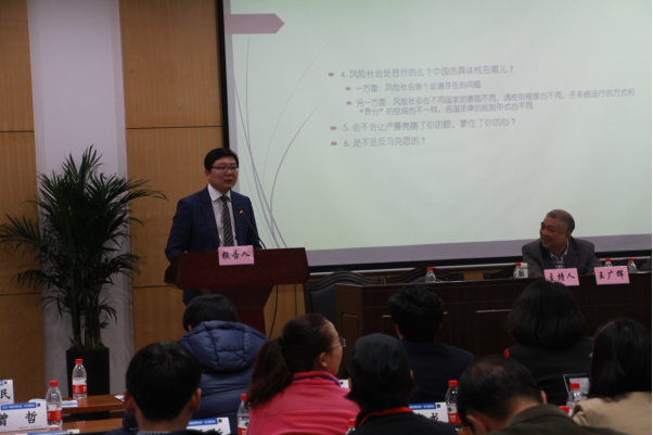 李忠夏教授的主题报告首先从这篇文章的缘起讲起,以风险社会为切入点,主要运用贝克和卢曼的理论对风险社会进行阐释。而后,从社会沟通的多重偶然性来论述风险社会的产生,运用诙谐的案例来详细地描述了风险社会的两大特点:风险的普遍性、风险社会“去界分化”的危险。在详细描述风险社会法律规制困境的过程中,提出了风险社会下解决问题的宪法思维——风险社会中的宪法调控。并从风险社会是否需要独特的宪法思维和宪法功能进行了详细地论证,还基于部门法与宪法关系的演进和风险社会中“基于宪法解释”必要性的论证,提出了宪法调控风险的制度安排。此外,还围绕评议人的书面评议意见澄清了一些问题。