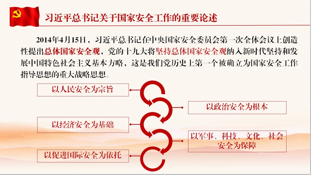 张梅副书记领学了习近平总书记关于国家安全工作的重要论述,讲解了国家安全是安邦定国的重要基石、坚持党对国家安全工作的绝对领导、坚持中国特色国家安全道路等方面内容,介绍了《中华人民共和国境外非政府组织境内活动管理法》主要内容,还开展了违反教师职业行为十项准则典型案例警示教育,引导老师们筑牢思想防线、严守师德底线。