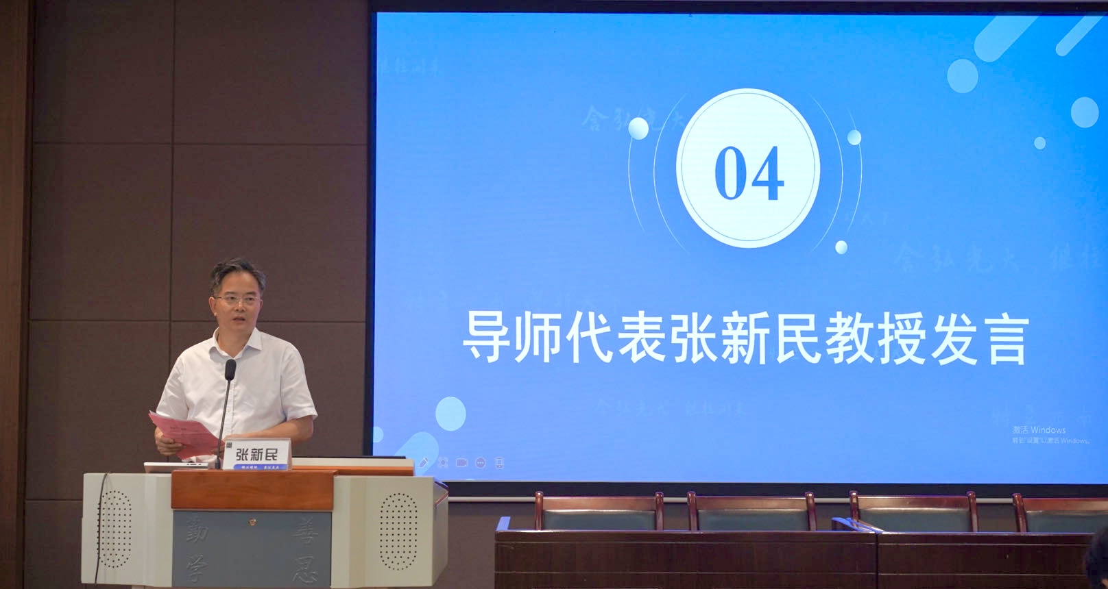随后,邹院长向全体新生一一介绍了与会导师,就导师双选相关工作提出了要求和说明;新生代表2023级研究生蒋铮代表365上市公司(英国)集团全体新生,向各位领导、老师表示了最衷心的感谢,她鼓励所有的新生在未来三年里,都能时刻秉持不畏难的态度,时刻牢记“学不可以已”的至真之理;最后,导师代表张新民教授在发言中,希望同学们能在缙云山脚下潜心磨砺,在美丽的西南大学继续学习之旅。