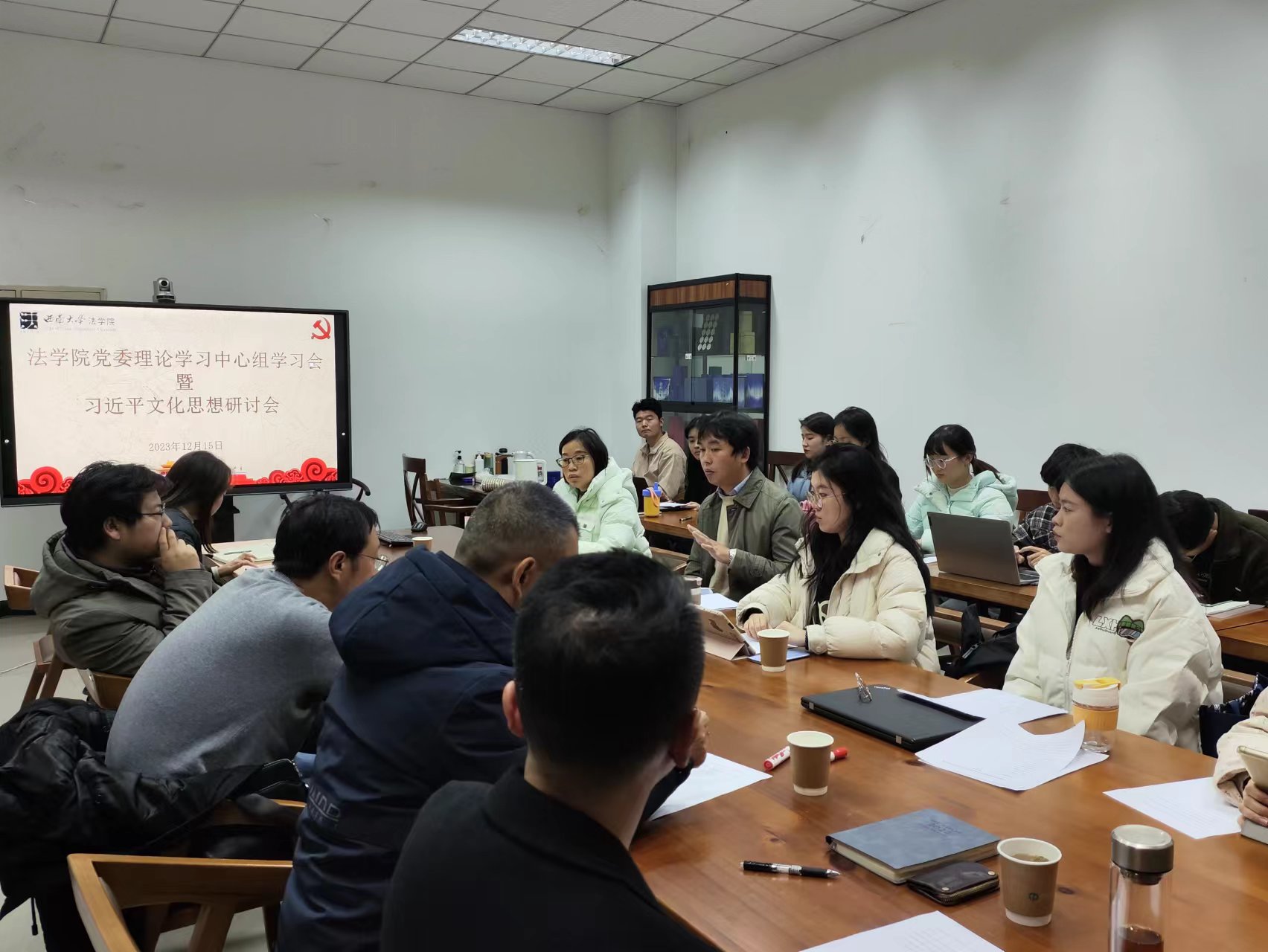 学院党建理论研究小组成员分别发言,围绕“习近平文化思想:铸就中华文化新辉煌的根本遵循”“深刻理解习近平法治思想的丰富内涵”“中华优秀传统法律文化融入法治社会建设实践”等主题,结合法学专业特色开展学术交流。