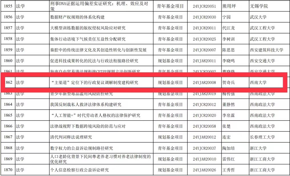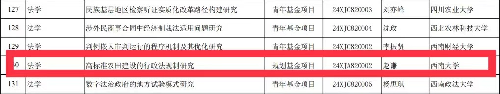 9月11日,教育部社科司正式公布了2024年度教育部人文社会科学研究一般项目立项结果,我院赵谦教授申报的《高标准农田建设的行政法规制研究》(西部项目)、贺奇兵副教授申报的《“主渠道”定位下的行政复议调解制度建构研究》(一般项目)分别获批教育部社科规划基金项目立项。