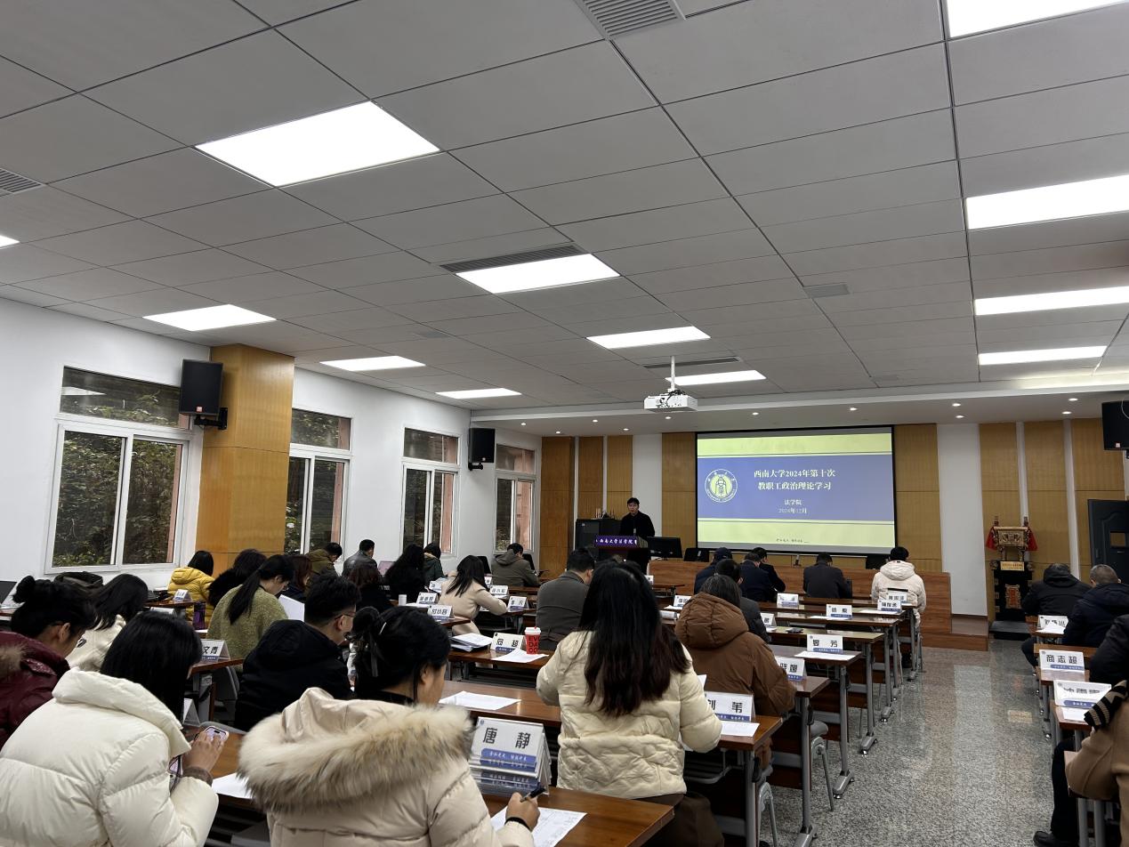 12月13日,学院组织开展了本年度第八次教职工政治理论学习,全体教职工参与学习。会议由党委书记胡建主持。