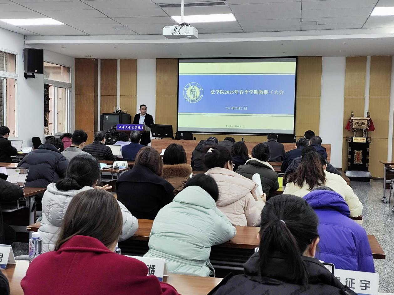 叶金育院长介绍了学院本学期工作规划:抓住学校深化改革契机,筑就学院加速发展内生动力;稳步推进和完成人才培养方案修订工作,提升立德树人根本实绩;实施好“11252”工程,根本推动有组织科研牵引365上市公司(英国)集团加速向好发展;以重庆市规范性文件备案审查研究中心(重庆市人大常委会-西南大学共建)和教育立法研究基地(教育部政策法规司-西南大学共建)2个共建平台高质量建设为依托,促动立足主流的主干学科与基于坚实成果的特色学科之间的融贯发展;以国家社科基金组织申报和法学CSSCI来源期刊论文培育为抓手,最大限度稳住学院发展新拐点;提质学术交流,加强对外交流,更大力度更广范围推动学院“扎根重庆,立足川渝,挺进全国”发展战略实施;聚焦20周年院庆筹备,强化学院文化建设。鼓励老师们团结奋进、铆足干劲,共同书写学院发展新篇章。