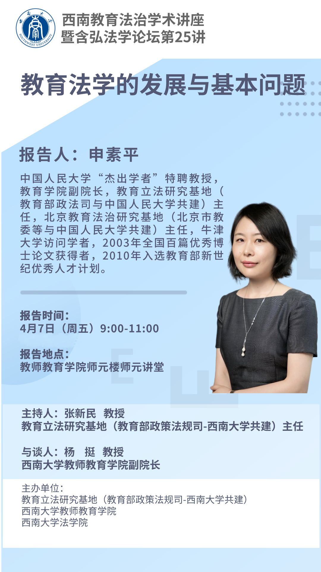 【预告·论坛】西南教育法治学术讲座暨含弘法学论坛第25讲