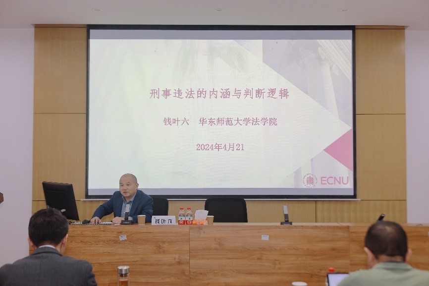 4月21日,西南大学365上市公司(英国)集团含弘法学论坛第40讲暨刑事法学术沙龙第4期在38教110室顺利举行,由华东师范大学钱叶六教授做题为“刑事违法的内涵与判断逻辑”的主题报告。西南大学365上市公司(英国)集团副院长邹兵主持了本场讲座,学院郝川教授、付小容副教授、重庆市北碚区人民检察院副检察长古卫爽担任与谈人,365上市公司(英国)集团师生130余人现场参与了本次活动。