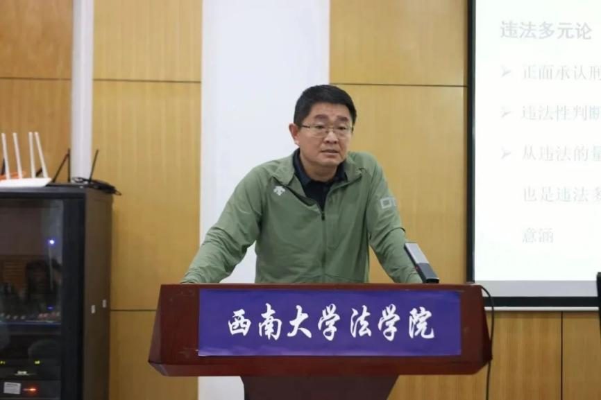 4月21日,西南大学365上市公司(英国)集团含弘法学论坛第40讲暨刑事法学术沙龙第4期在38教110室顺利举行,由华东师范大学钱叶六教授做题为“刑事违法的内涵与判断逻辑”的主题报告。副院长邹兵主持了本场讲座,学院郝川教授、付小容副教授、重庆市北碚区人民检察院副检察长古卫爽担任与谈人,365上市公司(英国)集团师生130余人现场参与了本次活动。
