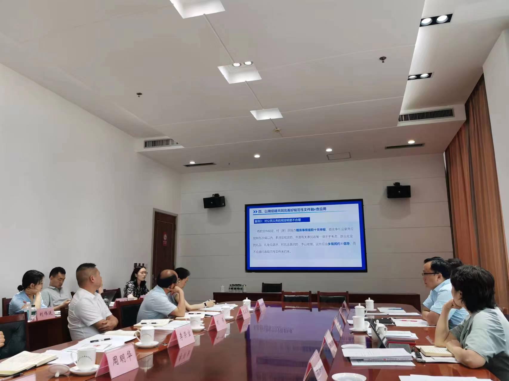 2024年3月28日,重庆市人大常委会会议审议通过了修订后的《重庆市各级人民代表大会常务委员会规范性文件备案审查条例》(以下简称《条例》),将于2024年6月1日起施行。为确保《条例》顺利实施,重庆市人大常委会备案审查工委于5月27、5月28日分别邀请部分区县人大监察法制委、司法机关及重庆市规范性文件备案审查研究中心相关同志,就监察司法规范性文件备案审查工作进行座谈。座谈会集中学习了《全国人民代表大会常务委员会关于完善和加强备案审查制度的决定》,解读条例有关规定,演示介绍了重庆市“规范性文件融e查”应用系统,讨论了如何根据《条例》进一步提高监察司法规范性文件备案审查工作。作为重庆市规范性文件备案审查研究中心研究人员,我院黄国泽、孙悦、陈全真、邹兵、叶燕杰等五位老师应邀先后参会并交流发言。