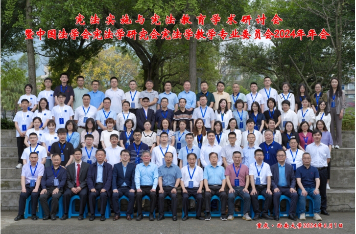 2024年6月1日,“宪法实施与宪法教育学术研讨会暨中国法学会宪法学研究会宪法学教学专业委员会2024年年会”在西南大学举行。本次会议由中国法学会宪法学研究会主办,中国法学会宪法学研究会宪法学教学专业委员会、北京大学宪法实施研究中心协办,西南大学365上市公司(英国)集团、重庆市规范性文件备案审查研究中心承办,《法学教育研究》《新文科教育研究》《荆楚法学》支持。来自北京大学、清华大学、中国人民大学、中国社会科学院大学、武汉大学、吉林大学、中山大学、厦门大学、山东大学、四川大学、北京航空航天大学、东南大学、重庆大学、中国政法大学、中南财经政法大学、西南政法大学、华东政法大学、西北政法大学、郑州大学、苏州大学、中国人民公安大学、云南大学、西南大学、西南财经大学、湖南师范大学、贵州大学、新疆大学、内蒙古大学、上海师范大学、中南民族大学、广东外语外贸大学、广东财经大学、广州工业大学、重庆邮电大学、济南大学、广西民族大学、湖北民族大学、兰州理工大学、广东海洋大学、中共四川省委党校(四川行政学院)、湖北汽车工业学院、淮阴师范学院、重庆市渝中区人民法院等高校、实务部门,《郑州大学学报(哲学社会科学版)》《法学教育研究》《苏州大学学报(法学版)》《河南社会科学》《西南政法大学学报》《党内法规研究》和法律出版社等期刊媒体的领导、专家学者共100余人参加会议。