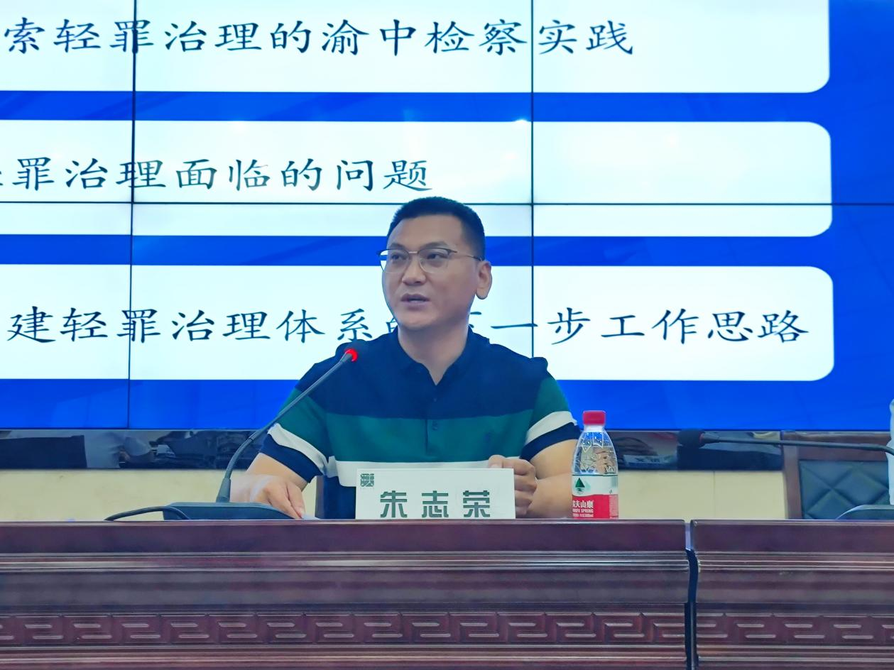 重庆市渝中区人民检察院副检察长朱志荣围绕“渝中区检察院关于构建轻罪治理体系的实践探索”做主题发言。朱志荣副检察长首先介绍了当前犯罪结构的变化背景和构建轻罪治理体系的总体要求。其次,他以“优管”“优办”“优治”三个维度报告了渝中区探索轻罪治理的检察实践。最后他指出当前在轻罪治理中面临着轻罪范围的界定标准不明确,罪与非罪、违法与犯罪的界限难界定以及保障人权与程序效率的关系难平衡的问题,并提出应当构建“轻罪检察+数字监管+矛盾化解+公益服务”的轻罪综合治理体系。