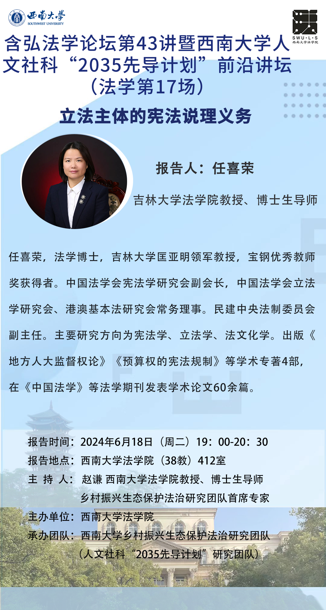 【活动·预告】(6月18日)任喜荣:《立法主体的宪法说理义务》