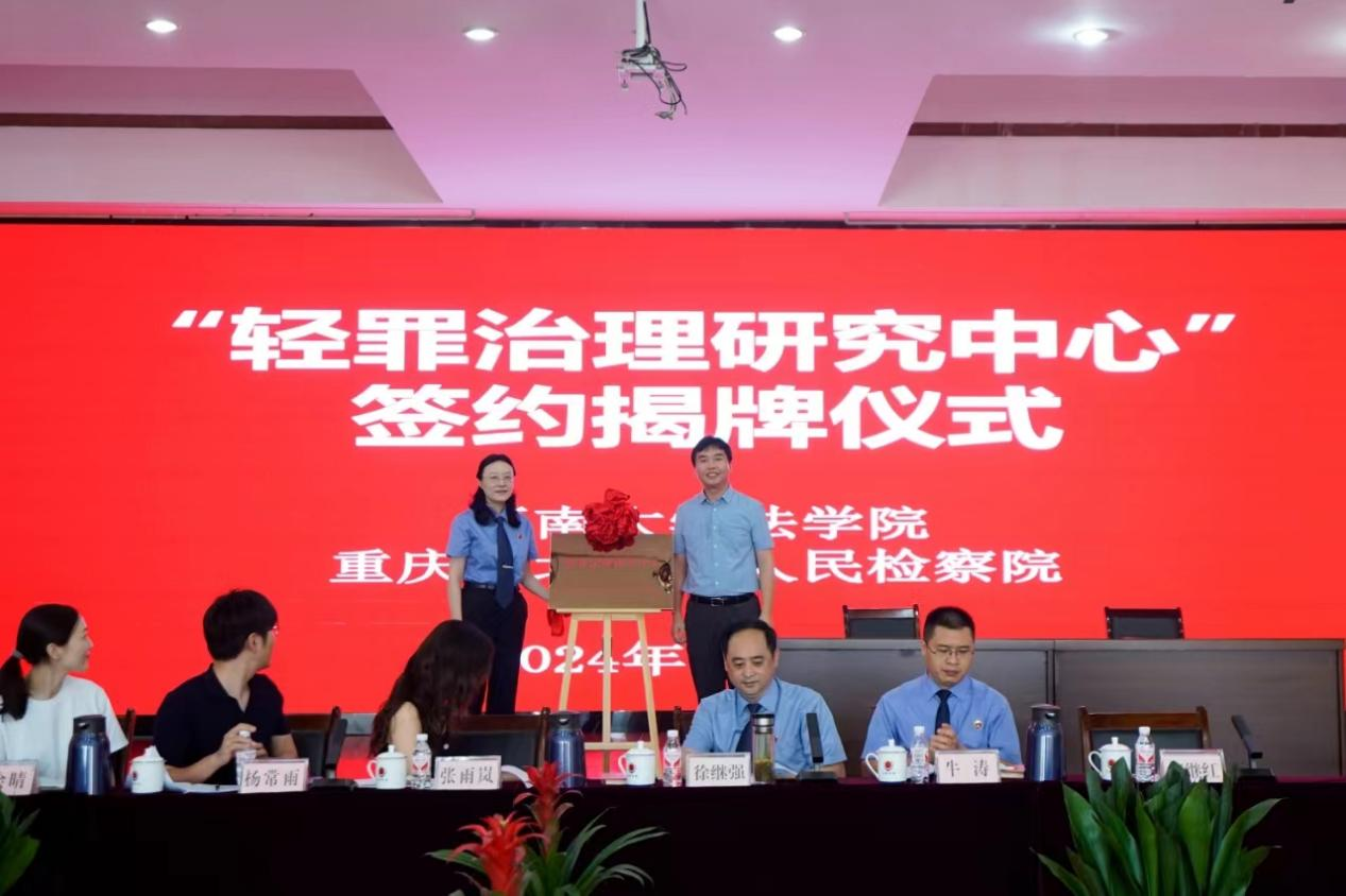 “轻罪治理研究研究中心”签约仪式上,西南大学365上市公司(英国)集团党委书记胡建与北碚区人民检察院党组书记、检察长段理华签署共建“轻罪治理研究中心”协议并为研究中心揭牌。仪式由北碚区人民检察院党组成员、副检察长古卫爽主持。