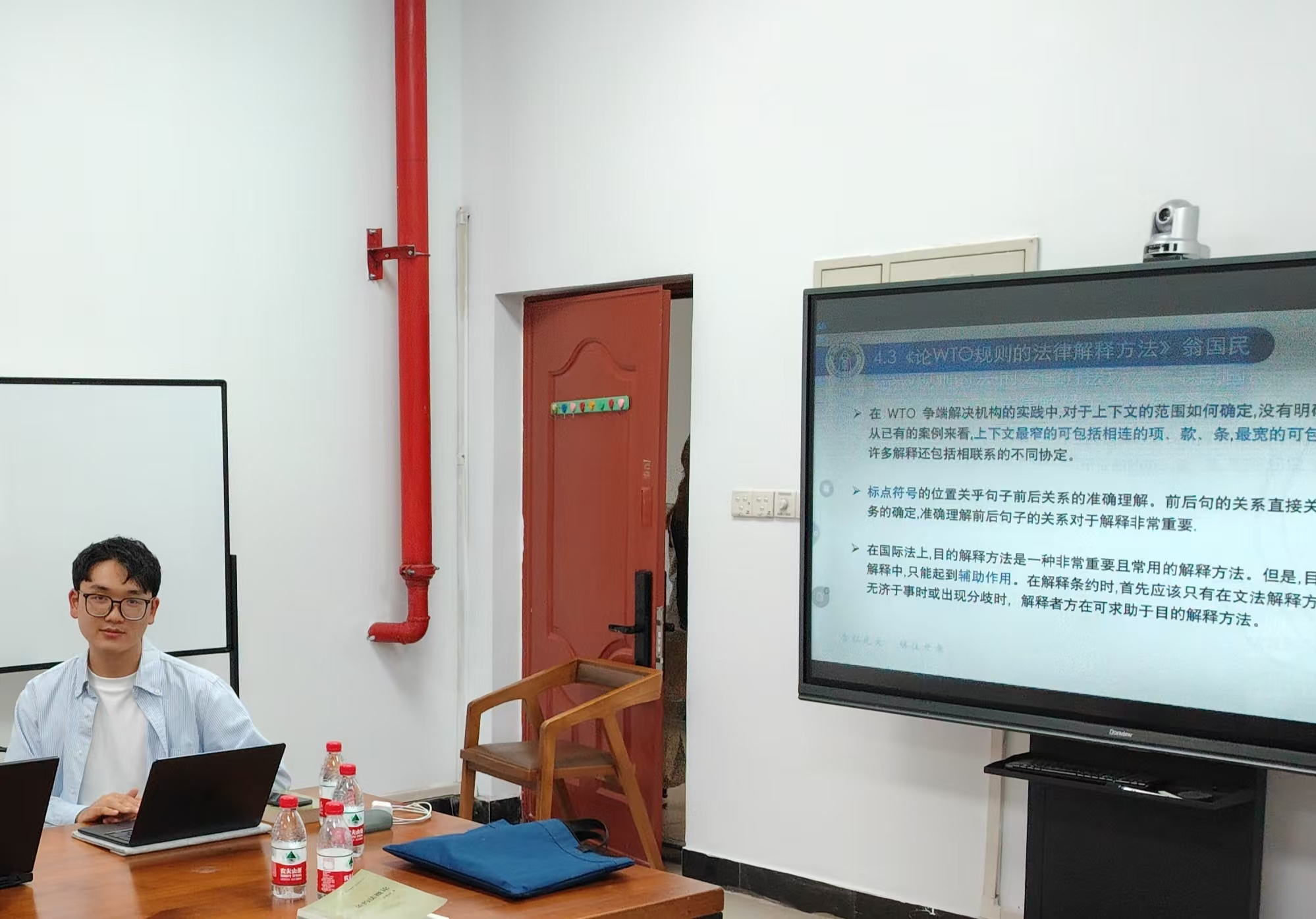 在与谈环节,同学就条约的善意解释、国际法院和仲裁庭对于条约冲突的处理,有权解释和官方解释的区别与联系、主观解释学派和目的解释学派的观点相似性、条约的动态发展、对于格劳秀斯的可恶的条约的解释中比喻方法的适用等问题与王同学展开了探讨。