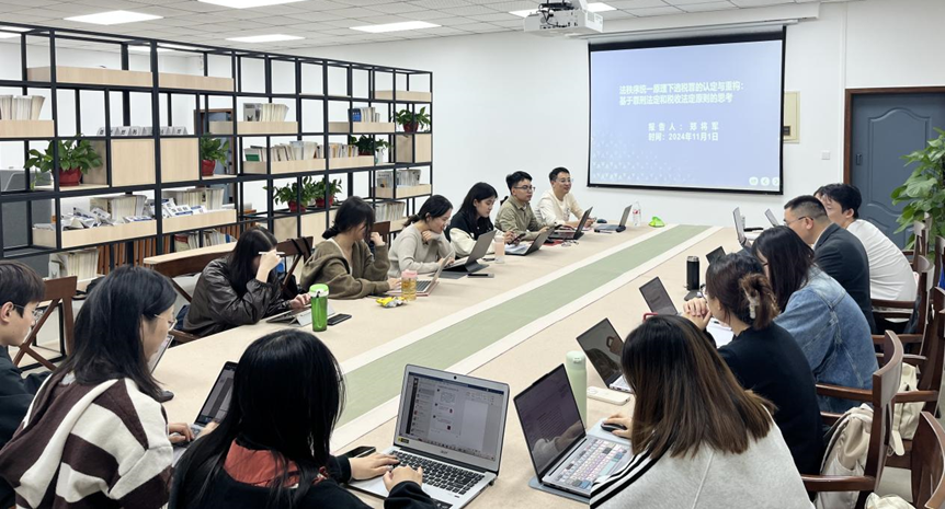 本次读书荟由2023级法律硕士朱元魁主持,郑将军博士后主汇报《法秩序统一原理下逃税罪的认定与重构——基于罪刑法定和税收法定原则的思考》一文。郑将军博士后围绕论文选题,从法秩序统一原理下“双重法定”原则、“双重法定”原则之下对逃税罪的审视、逃税罪的立法完善等方面展开汇报,核心依循法秩序统一原理的基本概念、罪刑法定与税收法定原则的关系之理论,指出现行逃税罪在行为方式、犯罪结果、犯罪主体、不予追究刑事责任条款存在的问题,并从审慎对行为方式进行扩大解释、避免犯罪主体的一般化、犯罪标准的重构、严格遵守“双罚制”原则、“不予追究刑事责任”条款的改进、程序正当原则的坚守这六方面提出了具体的完善建议。