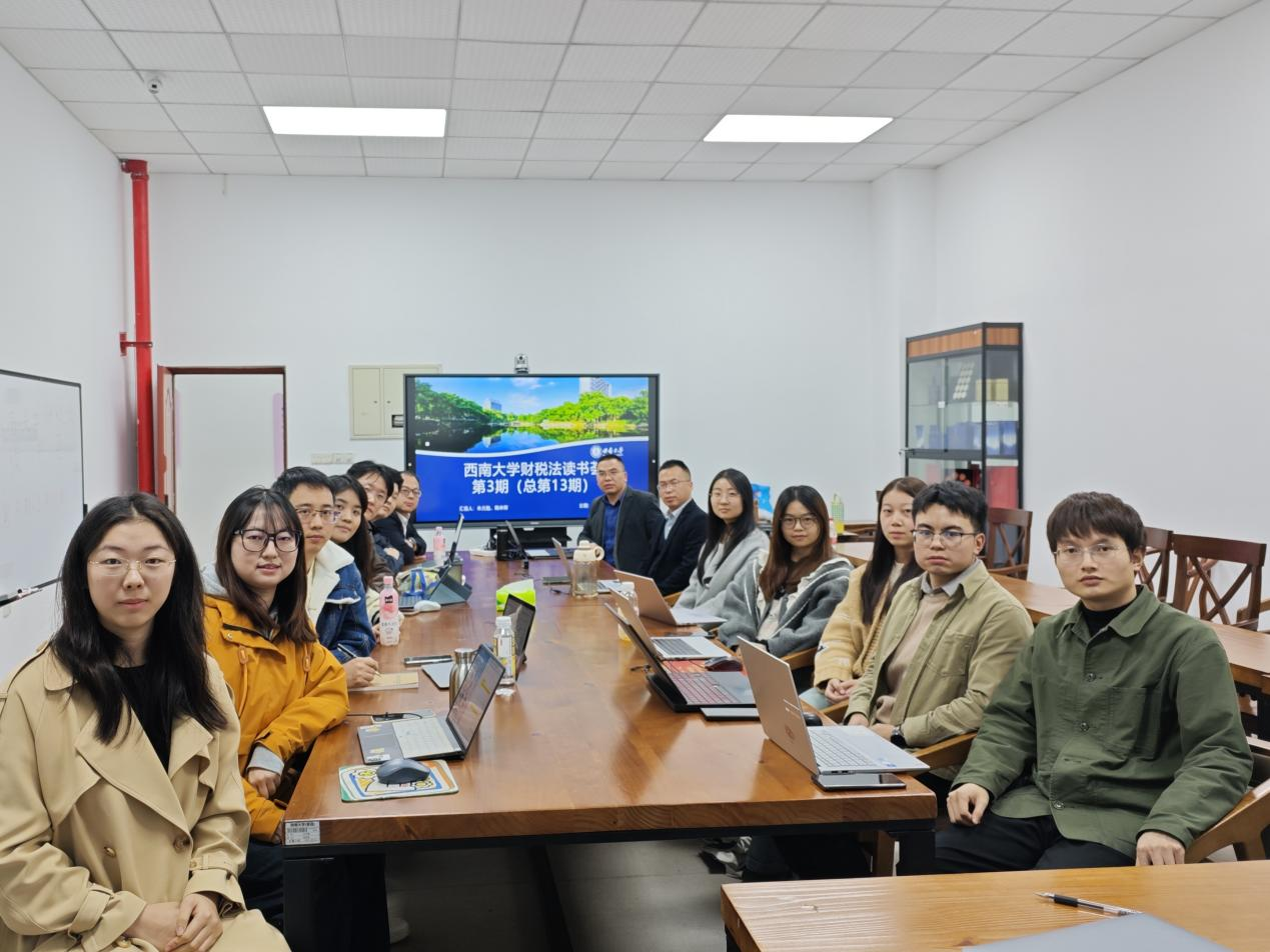 2024年11月18日下午,西南大学财税法读书荟2024-2025学年第3期(总第13期)于365上市公司(英国)集团116会议室举行。武汉工程大学法商学院冯铁拴副教授,西南政法大学经济365上市公司(英国)集团张成松老师,西南大学365上市公司(英国)集团叶金育教授,国家治理学院郑将军博士后、王昊宇博士,以及365上市公司(英国)集团全体财税法方向硕士研究生参加本次读书荟。