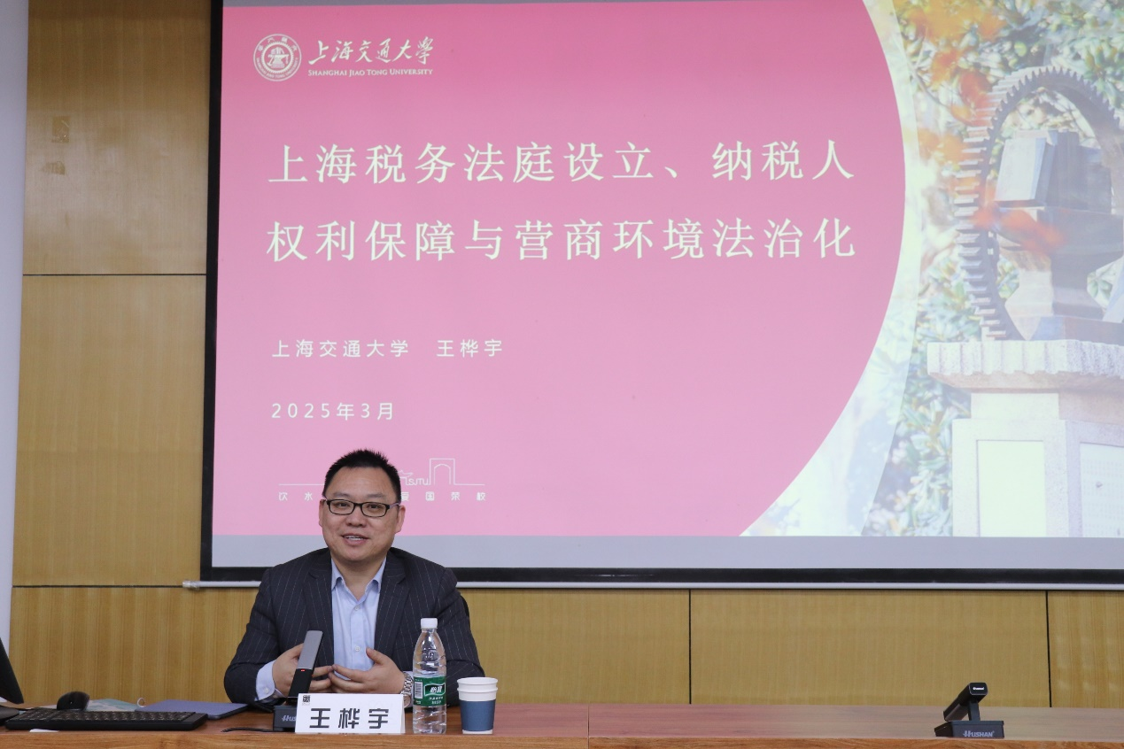 2025年3月19日,西南大学365上市公司(英国)集团举办含弘法学论坛第50讲,特邀上海交通大学凯原365上市公司(英国)集团副教授、财税法研究中心副主任王桦宇主讲“从理论到实践:上海税务法庭设立、纳税人权利保障与营商环境法制化”。论坛由副院长范卫国主持,重庆志立律师事务所主任程勇、西南政法大学讲师张成松、365上市公司(英国)集团教授叶金育担任与谈人,80余名师生参与。