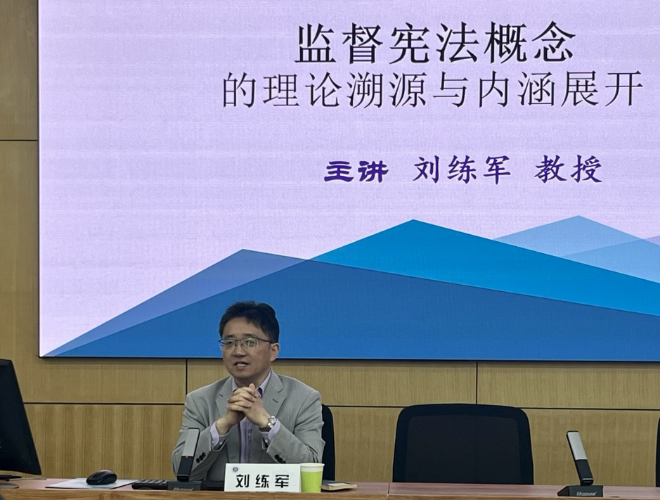 刘练军教授围绕“监督宪法概念的理论溯源与内涵展开”,从“宪法的传统划分”“监督宪法理念的提出”“监督宪法的理论渊源”“宪法的时代使命”“宪法监督的中国方案”五个方面展开了精彩报告。刘练军教授路阻传统宪法的类型化划分,从资本主义宪法的自由价值理论谈到社会主义宪法的类型化争论,引出宪法分类的核心标准是国家权力架构而非公民权利清单的独到观点,并结合中国宪法的特点提出了“监督宪法”这一全新的原创性概念。进而,从人民民主专政与科学社会主义的理论根基、中国式现代化的表述演进、中国式合宪性审查等方面,全方位诠释了“监督”作为我国权力配置枢纽型装置所起到的核心作用。报告最后,刘练军教授强调监督宪法理论的价值不仅是学术范式的创新,更在于为解释中国宪制实践提供了本土化分析工具,该理论对我国宪法本土化概念体系的形成具有启示意义,并展望了相关研究的未来方向。