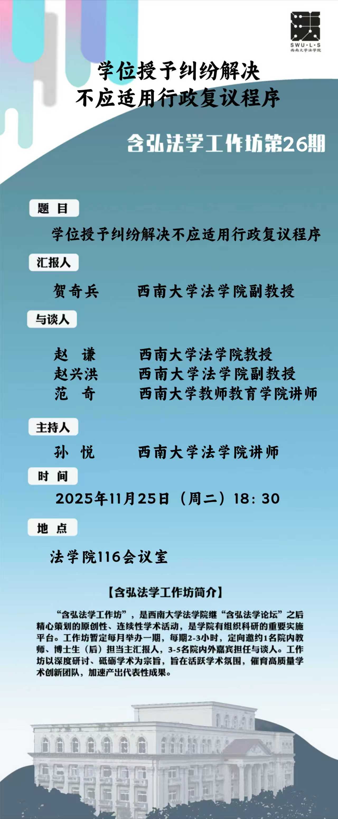 【含弘法学工作坊第26期】贺奇兵:《学位授予纠纷解决不应适用行政复议程序》