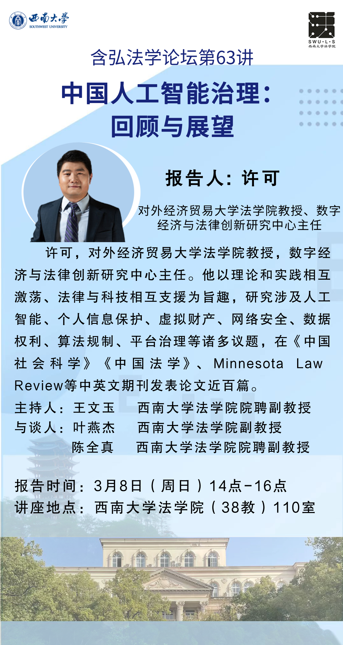 【含弘法学论坛第63讲】(3月8日)许可:《中国人工智能治理:回顾与展望》
