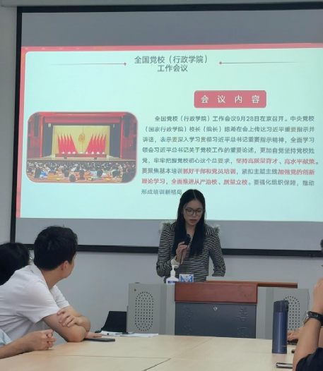 理论学习环节围绕两项核心内容展开:一是由邹思怡同志领学,全体党员专题学习《习近平总书记对党校(行政学院)工作作出的重要指示精神》及《中国共产党党校(行政学院)工作条例》,重点解读条例修订要点与核心条款;二是由汪倩同志领学 “时代楷模” 重庆检察未成年人保护工作团队先进事迹,通过观看专题宣传片及案例介绍视频,全体党员深入领会该团队关爱、保护未成年人的责任担当与精神内核。