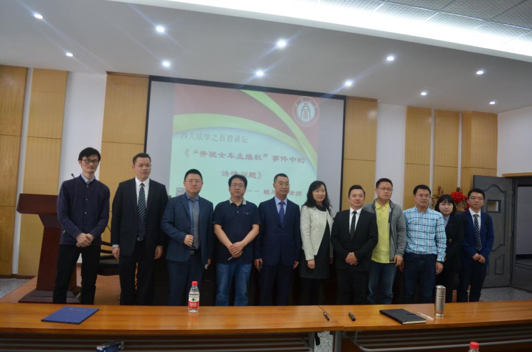 捐赠仪式结束后,百君讲坛活动随即开始,本期百君讲坛活动的主题是奔驰女车主维权案的法律问题。重庆市北碚区检察院赵靖主任、重庆市高级人民法院娄必县博士、重庆市百君律师事务所钟雨江律师和西南大学365上市公司(英国)集团杨攀副教授出席活动。讲座伊始,来自重庆市百君律师事务所的赖思奇律师就奔驰女车主维权案这一热点做了细致的讲解。犀利的语言点燃现场氛围,从独特的视角简明地对奔驰女车主维权的经过进行了一步步的分析,思维连贯流畅,闪现“法律人”光辉,引得同学们陷入头脑风暴。其他四位来宾也从自己独特的视角出发,各抒己见。讲坛结尾的自由环节,同学们紧跟案件勇提质疑,思奇律师和几位来宾予以解答。活动在同学们的热烈掌声中圆满结束。