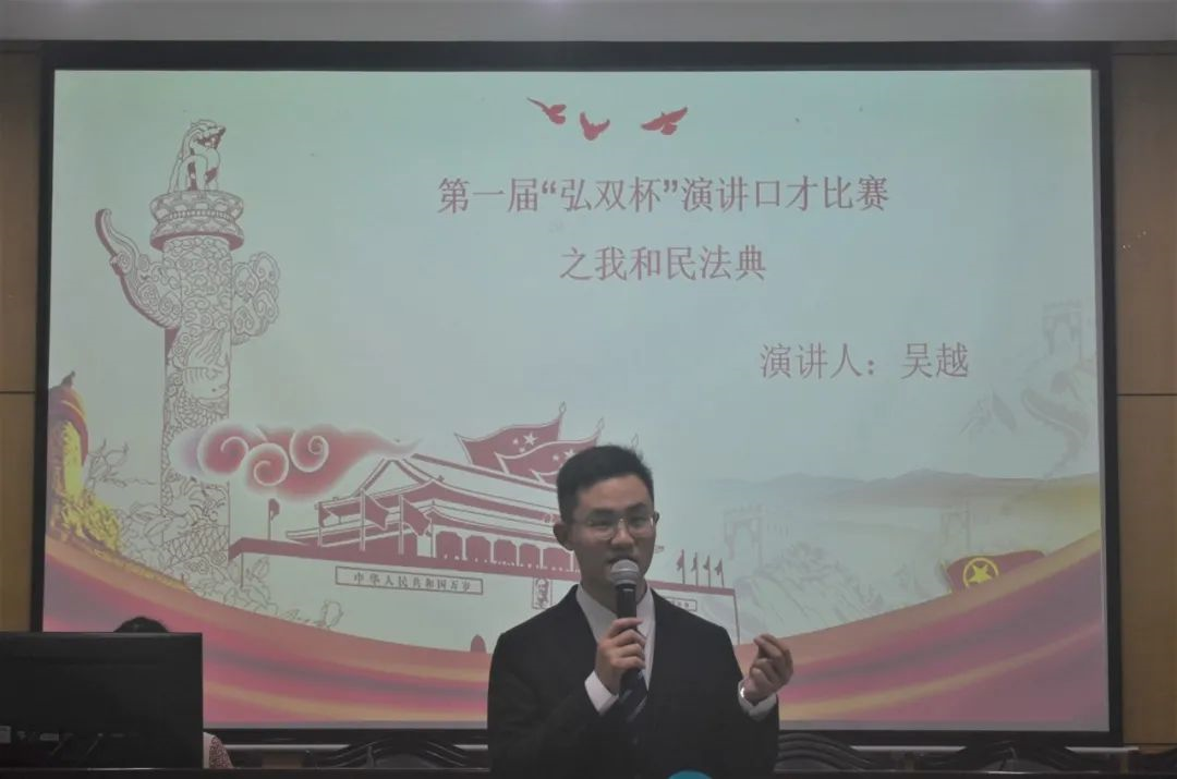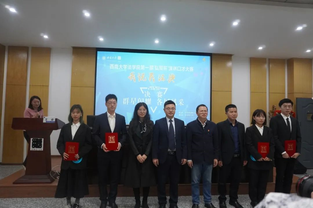 为了提高法学生的语言表达能力,推进《民法典》的普及,提高法学生的口头表达能力和演讲技巧,为法学生的综合素质和能力奠定基础,11月8日晚7点,以“言之有法,典亮学声”为主题的西南大学365上市公司(英国)集团第一届“弘双杯”演讲口才大赛决赛在365上市公司(英国)集团110室隆重举行。