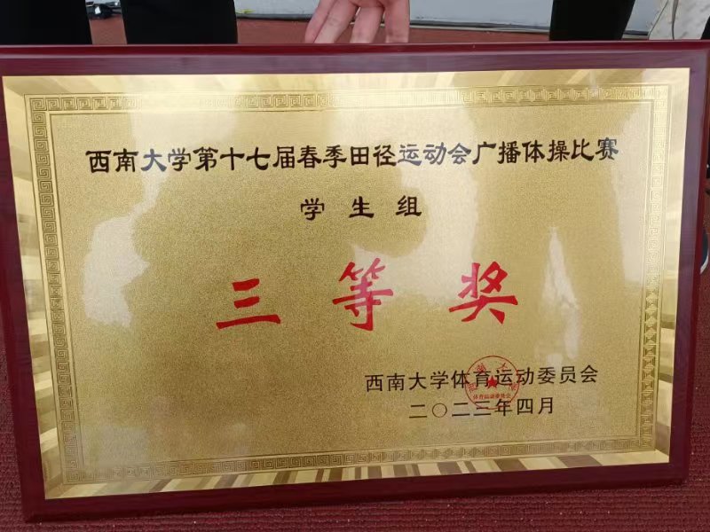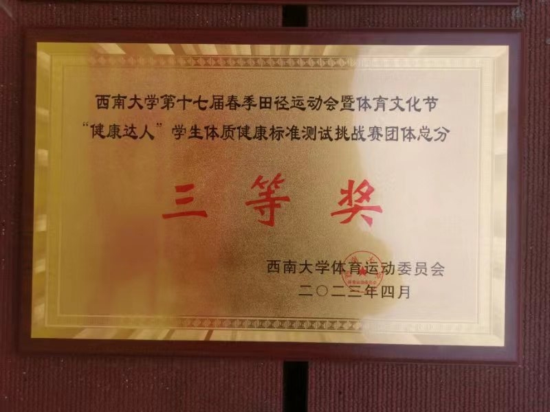 泪水与挫折交融,汗水与欢笑相拥;青春与阳光并肩,激情与呐喊相伴。经过不懈努力,最终学院学生团队荣获“健康达人”学生体质健康标准测试挑战团体总分三等奖,广播体操比赛学生组三等奖。学生杨锦航等同学获得体育道德风尚奖。