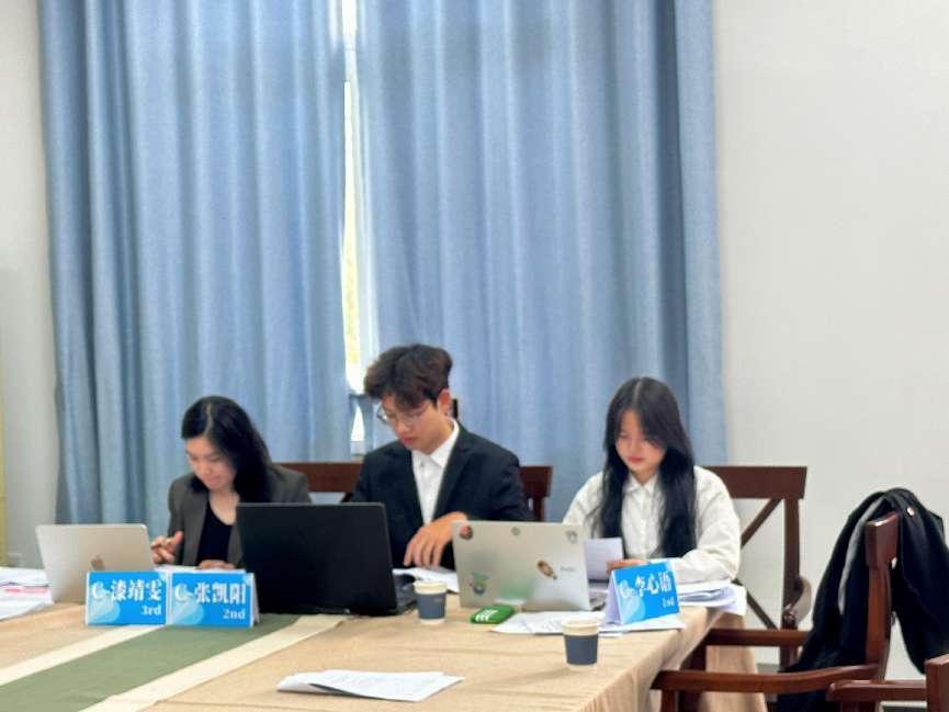 本次模拟法庭辩论赛,学院教师张宁宁、刘苇担任指导老师,王卓担任领队。学生队伍由刘海若、李心语、谭雅文、张凯阳、赵蔚旻、周倩如、李昕桐同学组成,联合北京大成(重庆)律师事务所律师共同参赛。主要分工为律师就法律问题提供指引,拟写法律观点纲要(Draft SkeletonArguments),学生负责书状的起草,律师再对书状进行完善;书状提交后,校企两个团队共同协助口辩人员消化书状,并做好赛前准备和庭审辩论。