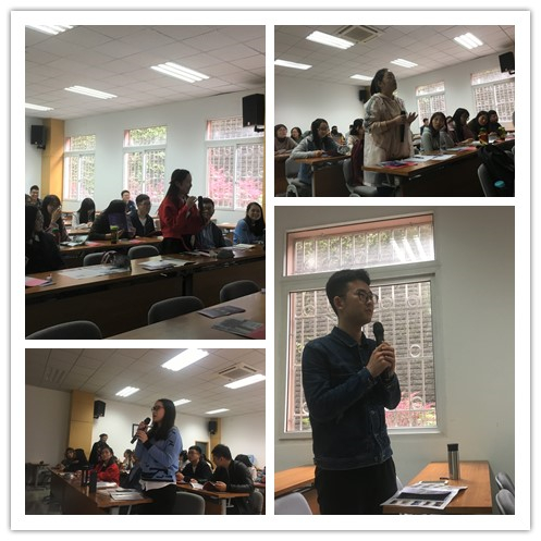 最后,在提问交流环节,在场的老师及同学们就座谈会的内容积极提问。例如,有同学提出美国JD一般攻读时间是三年,是否有其他延迟毕业的原因?桑国亚老师对此很明确地表示,只要完成72学分即可毕业,其他因素只要未影响学分计数则均无大碍;又如,有同学提出如何才能高效地训练自己的英文能力?桑国亚老师认为,兴趣是最好的老师,找到与自身感兴趣的内容,并用英文不断练习,这样才能高效率地提高自身英文能力;再如,有同学流利地使用英文与桑国亚老师就专业英语如何学习与提高进行了一番热烈地讨论。天普大学王老师也加入讨论,热情地分享了许多关于去美国天普大学攻读学位的各类注意事项,使同学们受益匪浅。此次座谈交流会在掌声中圆满结束。