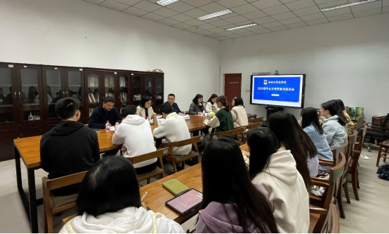 2023年3月8日上午,学院2023届毕业生考研复试座谈交流会在学院116室召开。学院院长叶金育、党委副书记张梅、副院长房香荣、副院长邹兵、辅导员胡婷、米倩倩以及2023届考研学子参与座谈。本次座谈会由张梅副书记主持。