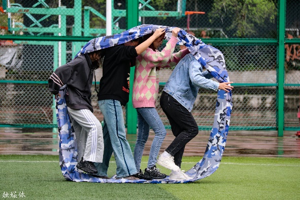 之后天气放晴,趣味项目热闹非凡。在“丢绣球”比赛中,一人将羽毛球打出,另一人用篓子接住,选手们默契配合,精彩绝伦。在“袋鼠跳”比赛中,选手卖力起跳,进行接力。在“珠行万里”比赛中,所有人的注意力都集中在小小的乒乓球上,为了让它平稳运至终点,选手们用尽浑身解数。