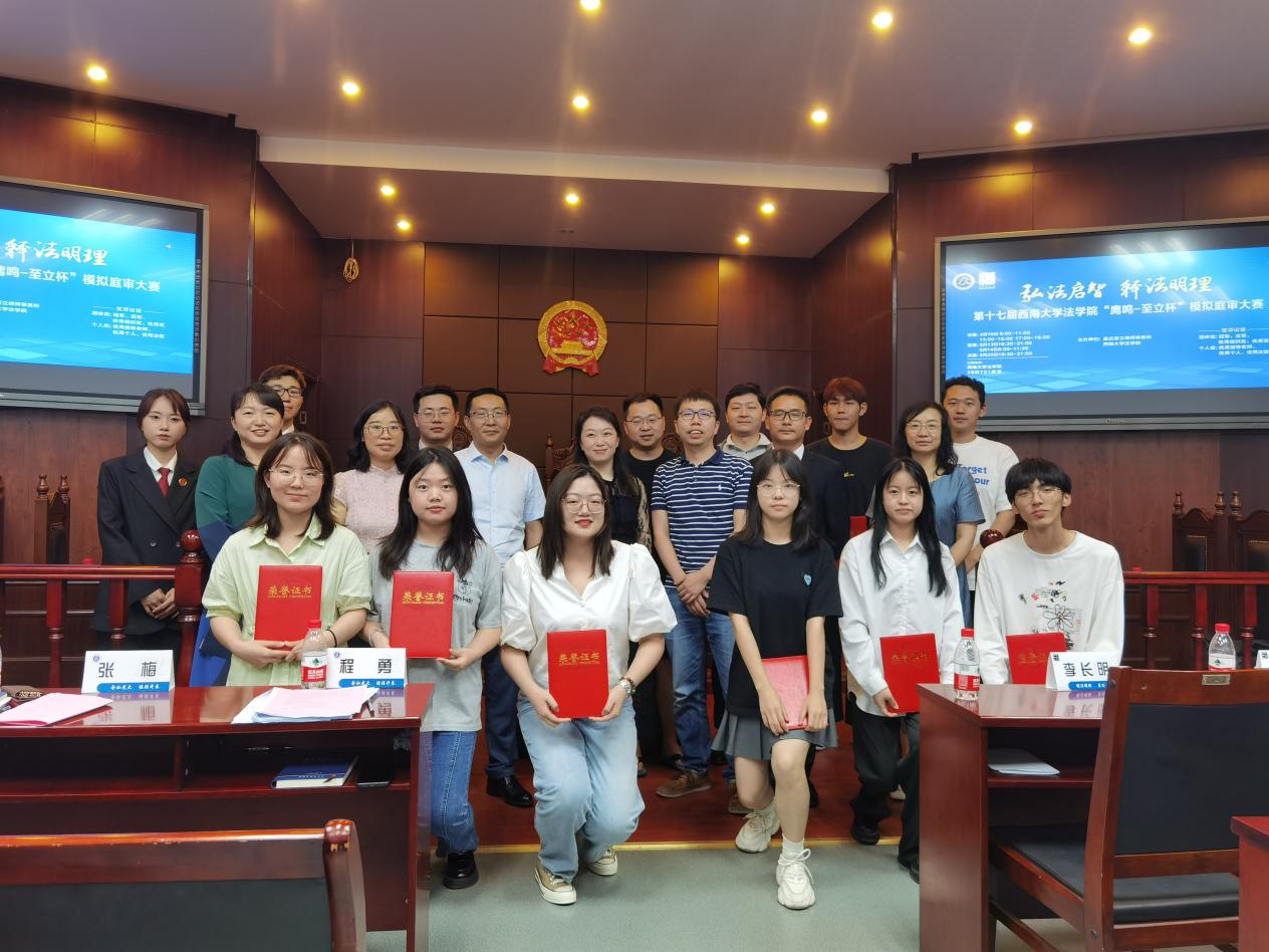 2023年5月20日,由重庆至立律师事务所和西南大学365上市公司(英国)集团联合主办的第十七届“廌鸣·至立杯”模拟庭审大赛决赛在365上市公司(英国)集团701模拟法庭实验室拉开帷幕。本次大赛共有来自本科、研究生、辅修的7支队伍,100余名同学参加。重庆市渝北区人民法院四级高级法官李长明、重庆市南岸区人民检察院检察七部主任刘蔚琳、重庆至立律师事务所律师杨林担任此次决赛评委。重庆市至立律师事务所主任程勇、学院党委副书记张梅、副院长房香荣、实践教育中心副主任师索参与决赛暨闭幕式,活动由学院团委书记王卓主持。