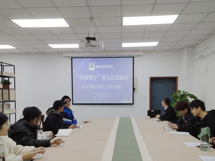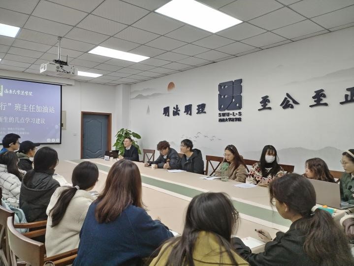 为帮助同学们更快、更好地适应大学的生活学习节奏,养成良好、高效的思维模式和学习方法,同时增进师生之间的关系,12月1日下午,学院举办了“明辨廌行”班主任加油站第四期活动。活动主题为“给法学新生的几点学习建议”,活动由2023级法学一班班主任张海鹏老师主讲。