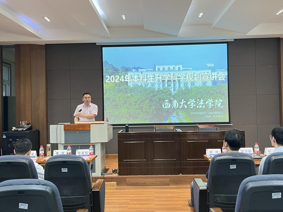 为进一步引导学生做好升学规划,帮助学生提前了解考研形势、树立升学目标、科学规划学习,提高学院升学率与升学质量,5月6日晚,学院2024年本科生升学科学规划宣讲会在38教412报告厅举行。学院党委书记胡建、院长叶金育、副院长邹兵、副院长范卫国、房香荣副教授、罗明东老师、叶燕杰老师、孙悦老师、陈全真老师、学工办主任王卓、本科生辅导员胡婷参加会议,会议由学院党委副书记张梅主持。