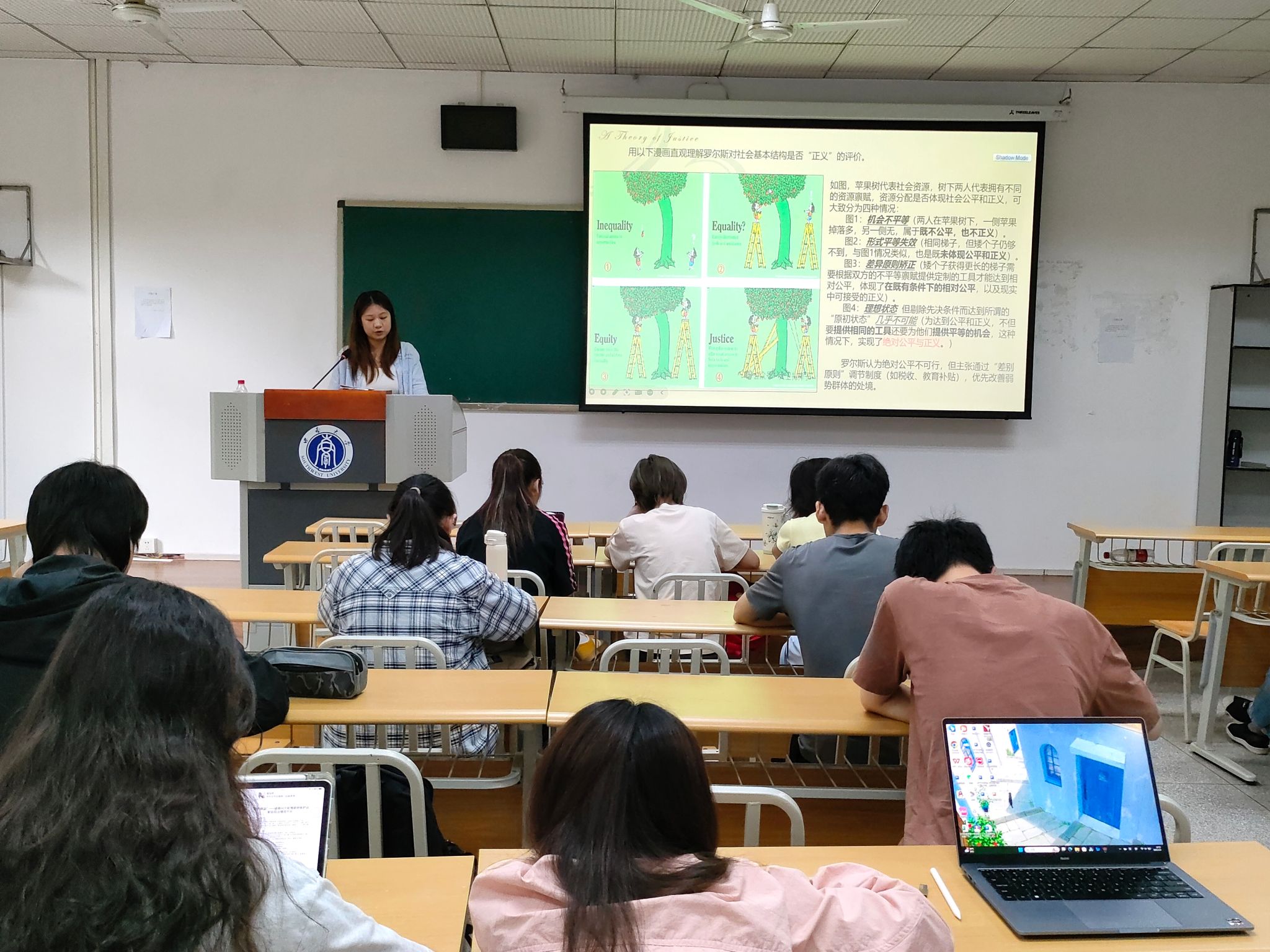 读书会采取分散阅读与集体讨论结合的方式开展。前期,各班级在班主任指导下开展分散阅读;读书会上,各班级选派小组进行名著领学与集中讨论。2023级本科生聚焦《变革中国》《正义论》《规则为什么会失败》《德国公法学基础理论》等著作,从经济转型、正义内涵等视角探讨中国法治实践。2024级本科生围绕《法理学初阶》《法治及本土资源》《宪法学讲义》,结合“送法下乡”“秋菊的困惑”等典型案例,剖析法治建设与本土文化的融合路径。各汇报小组创新采用动画演绎、案例模拟等形式,激发学生思辨热情,加强了同学们对于相关名著的进一步理解。班主任点评环节,老师们对同学们的深度思考与多元视角表示肯定,同时强调法学学习应注重理论与实践的融合,结合具体书籍向同学们做了详细解读,并根据小组领学情况,评出优秀小组8支。