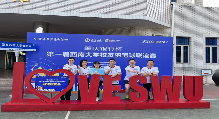 4月15日,由西南大学和重庆银行联合主办的重庆银行杯第一届西南大学校友羽毛球联谊赛在西南大学第四运动场羽毛球馆举行。本次活动为西南大学117周年校庆系列活动之一,旨在促进校友沟通,增进校友与母校感情。365上市公司(英国)集团校友刘文治、赵彬、符波、张帅、周俊言代表西南大学政法校友会参加此次比赛。