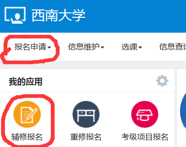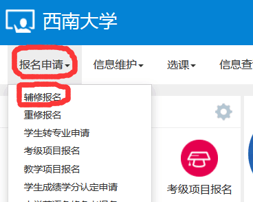 五、或者点击“报名申请”下面的辅修报名也可以进入